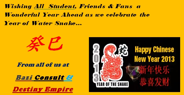 Notice: Our Bazi Reading Service will resume after the 15th of Lunar Calendar or 25th Feb 2013.