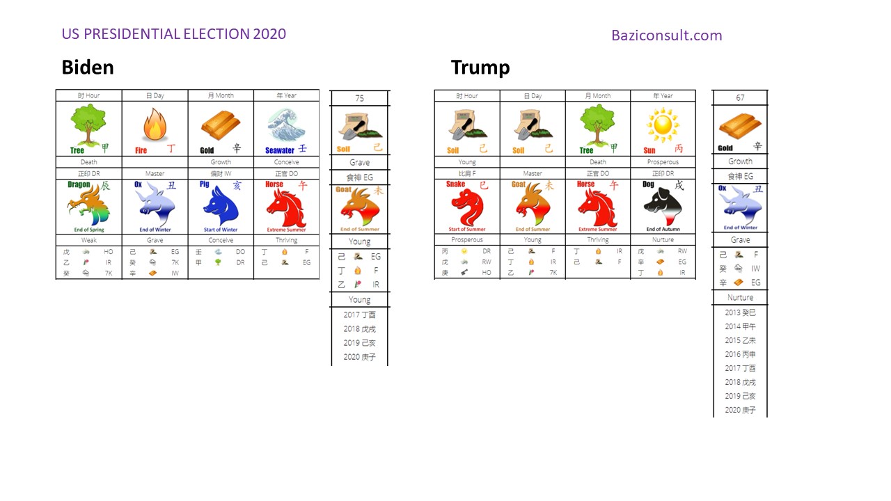 The presidential election will be held this year 2020 in the year of the Metal Rat 庚子 on November 3 which is still the 丙戌 Fire Dog month. Thus the year of Metal Rat is significant to their chances of winning.