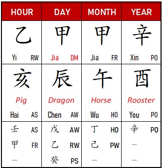 Most importantly is this Bazi has the wife to feed his happiness and coupled by the fact he has not a huge ego behind him, makes his marriage a blissful one. You may wonder why a Tree 甲 person would have no ego. This is precisely what makes this chart flexible and adaptable is the presence of the Flower 乙.
