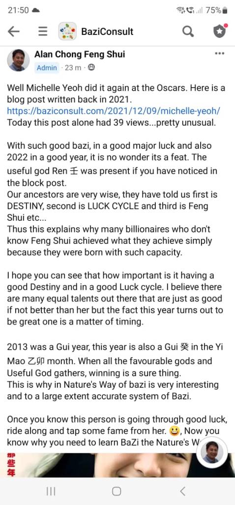 I would just end this blog urging people to think rationally, logically and review what you have achieved in your Bazi journey after hours of watching live and trainings. If you have not and still have not given up, it is time to look elsewhere because if the knowledge is incorrect, it will stay this way always.