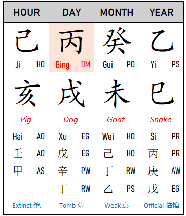 In a way it is like your car, is it a small car, medium car, luxury car, MPV or SUV. JK is a Bing fire 丙 person and her chart’s configuration is very strong in Earth element and some fire, wood and water element. Looks like her chart is very lacking in Metal element.