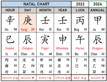 Come 2024 in the year of Wood Dragon 甲辰, after 2 years of trial, he was finally sentenced to jail in Jia Chen 甲辰 year. Jia Chen can be read as the image of prison for this BaZi. Why? Its Nature’s Way Bazi.