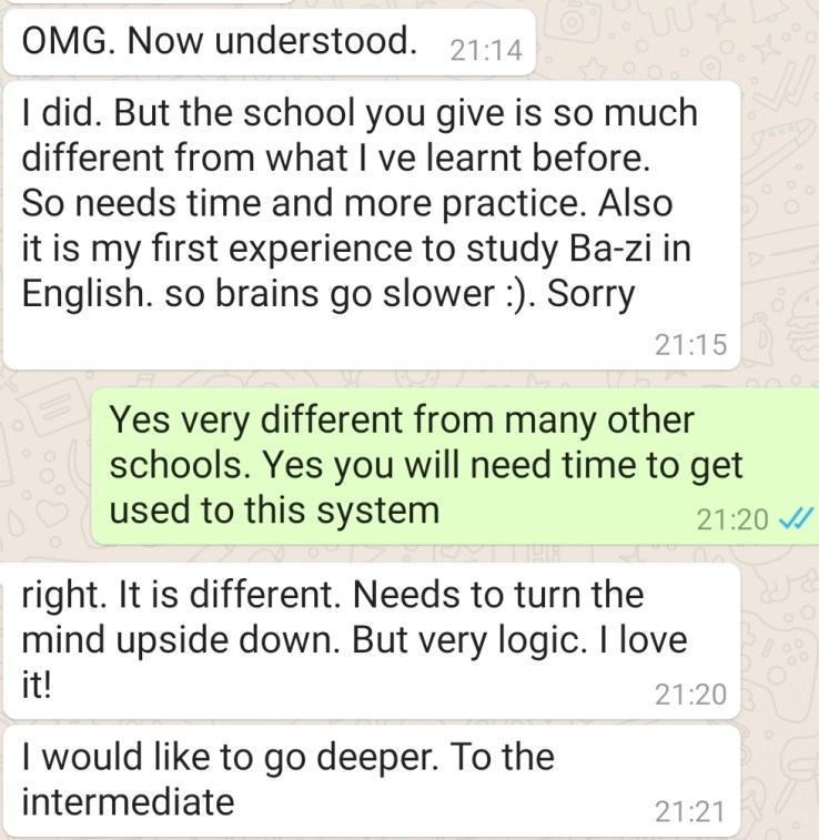 “Different way of reading/understanding Bazi & way of life. Friendly teacher.”